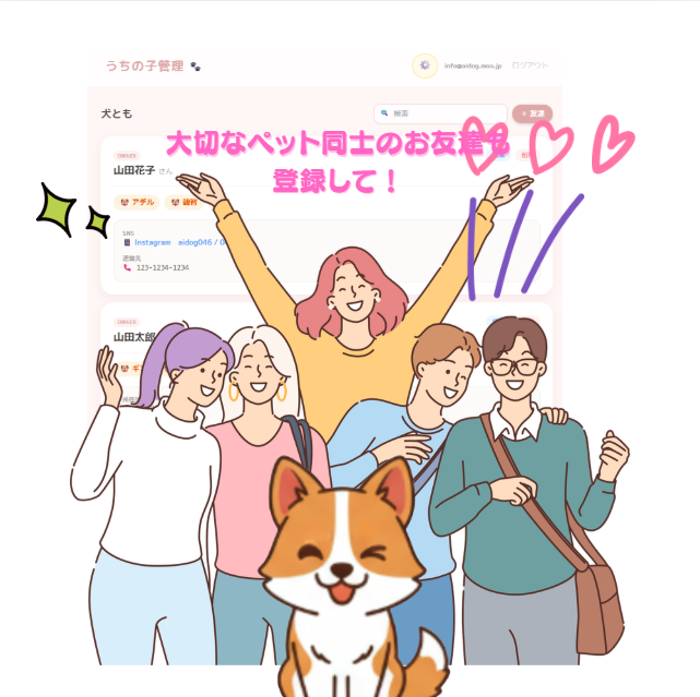 犬とも名簿: お散歩で会うお友達の名前や特徴をメモ。交流がもっと楽しくなります。